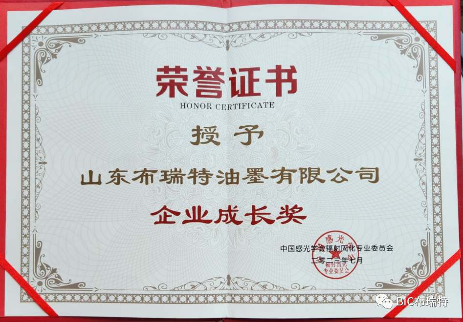 In this conference, Shandong Brite Ink Co., Ltd. won the two honours of "Scientific and Technological Innovation Award" and "Enterprise Progress Award" in recognition of the 30th anniversary of the establishment of the Radiation Curing Committee of China Photographic Society.