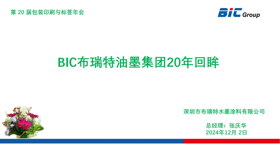 At the 20th Annual Packaging, Printing and Labeling Conference “Review and Prospect - Telling 20 Years of Your Own Story” event, Zhang Qinghua, General Manager of Shenzhen Bright Ink & Coating Co.,Ltd. was invited to share the 20 years of BIC Brite Ink Group's development history. It is not only a review of the past, but also an outlook for the future.