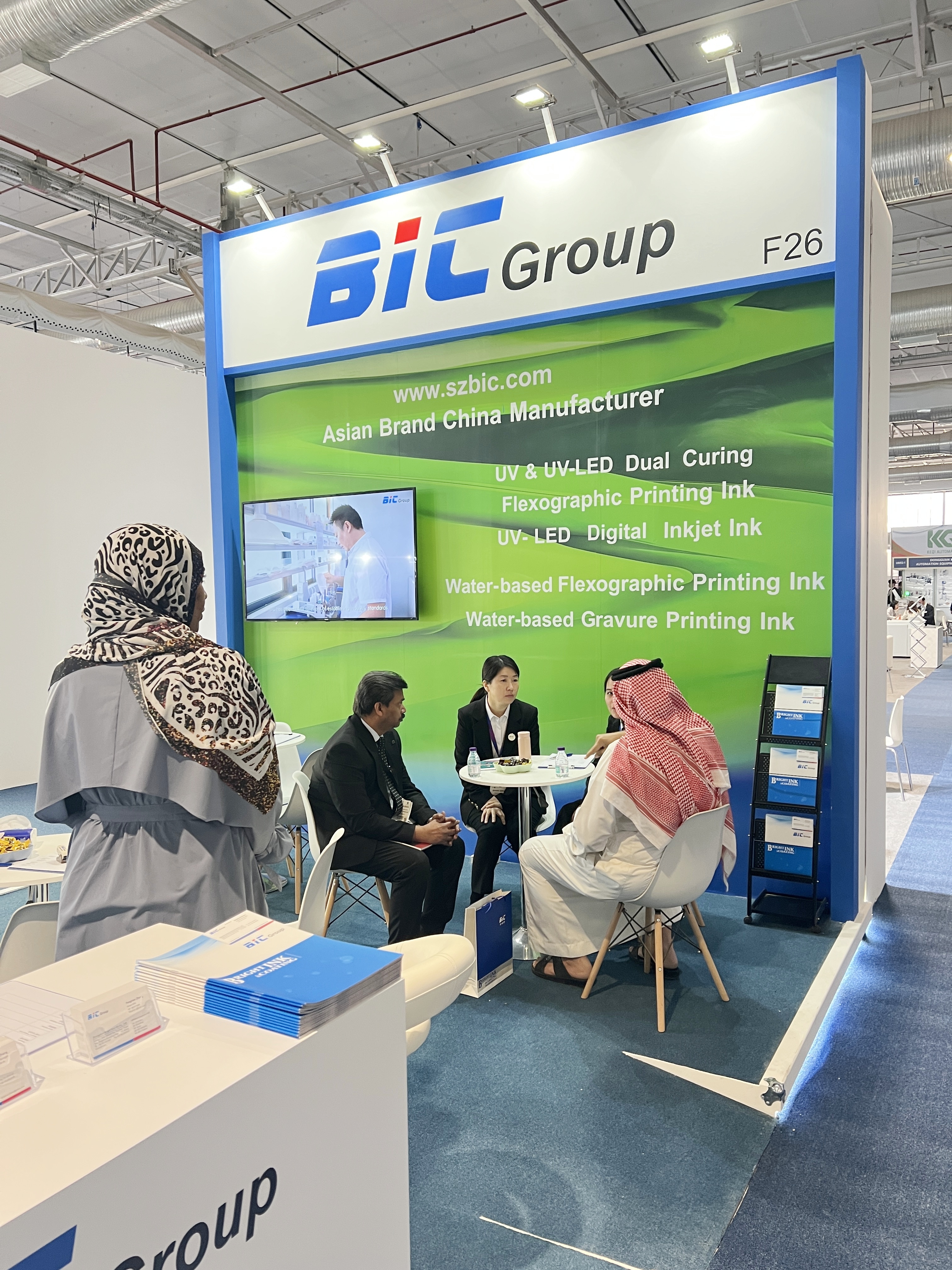 BIC Group, as an Asian brand of high-end printing inks specialized in manufacturing in China, participated in the exhibition and presented the products and applications of the “BIC Brite” brand to the customers and visitors from the Middle East and the Gulf at the exhibition booth, focusing on the leading UV & UV-LED printing inks in Asia. This time, BIC Group focused on displaying the leading technology in Asia, such as UV & UV-LED double curing flexo label and cigarette packet inks, UV-LED digital inkjet inks, aqueous flexo instant lottery scratch-off inks and liquid aseptic packaging inks, aqueous gravure cigarette packet, food packaging and playing card inks.